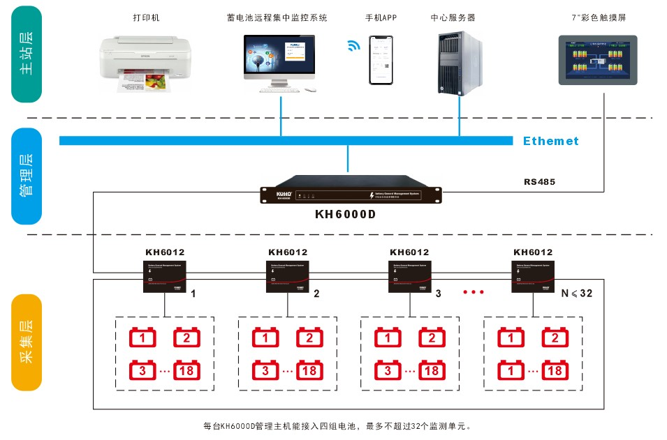 KH6000D蓄電池在線監(jiān)測管理系統(tǒng)由管理主機、監(jiān)測單元、7”彩色觸摸屏三部份組成,用戶可根據(jù)具體需求及結(jié)合現(xiàn)場安裝情況加以選擇。